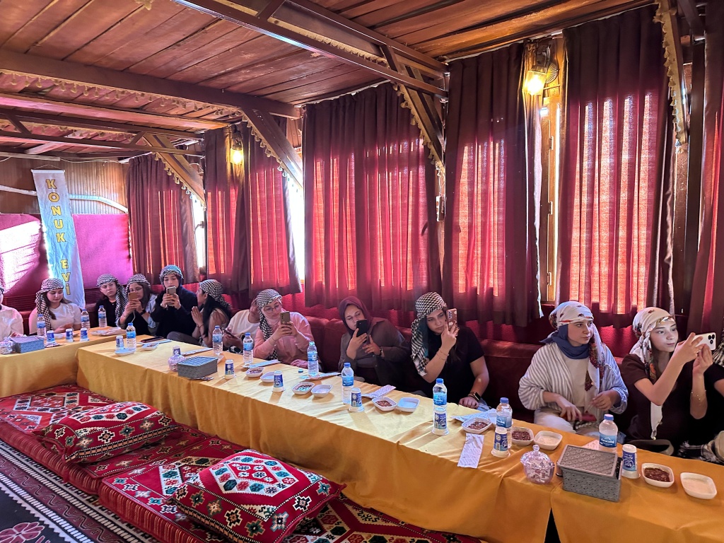 Şanlıurfa gezimizin unutulmaz anlarından biri de Sıra Gecesi oldu. Çiğ köfte yoğruldu, türküler söylendi, halaylar çekildi. Geleneksel müzik ve lezzetler eşliğinde, öğrencilerimiz kültürel mirasımıza dokunarak eğlenceli bir gece geçirdi.